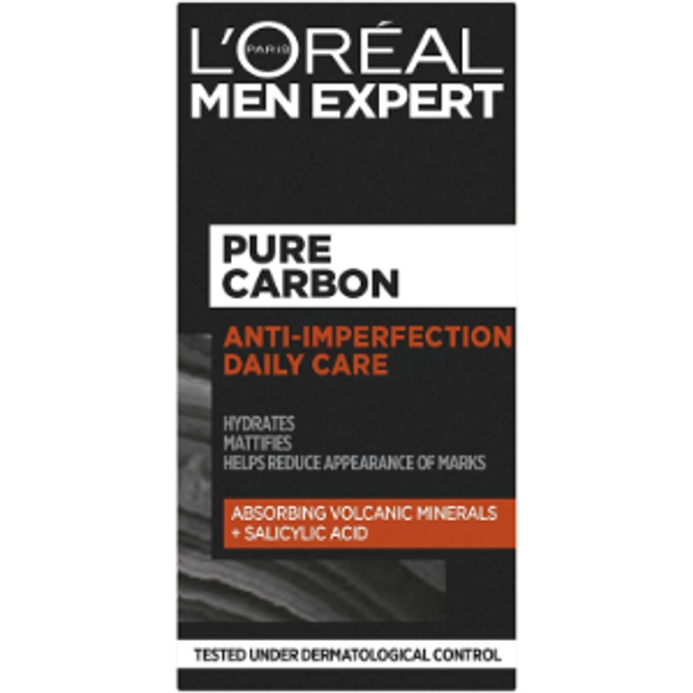 Reduce the appearance of marks whilst hydrating the skin. L'Oreal men Expert pure carbon anti-spot daily care 50ml is powered by L'Oreal technology to hydrate the skin and help reduce the appearance of marks. Enriched with volcanic minerals and airlicium, the product absorbs sebum and helps reduce light reflection, making the skin smoother and softer. Using powerful dual Salicylic acid providing exfoliating properties that helps to reduce the appearance of marks.